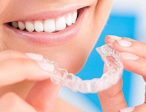 Invisalign uses virtually invisible aligners (braces) to straighten crooked or misaligned teeth. They are like a thin, clear gum-shield that are hardly visible. In fact, many of our patients say that no one noticed their aligners at work or at home.